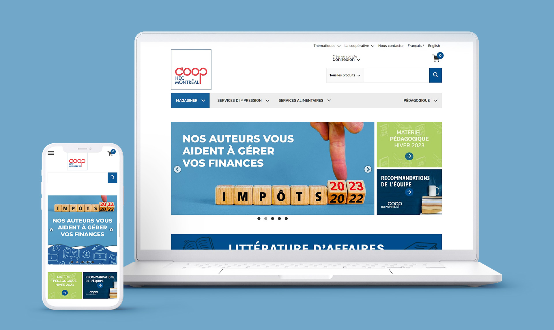Mandat: Création de divers bandeaux web et mobile afin d'amener les étudiants à naviger entre les différentes pages du site web de Coop HEC Montréal.